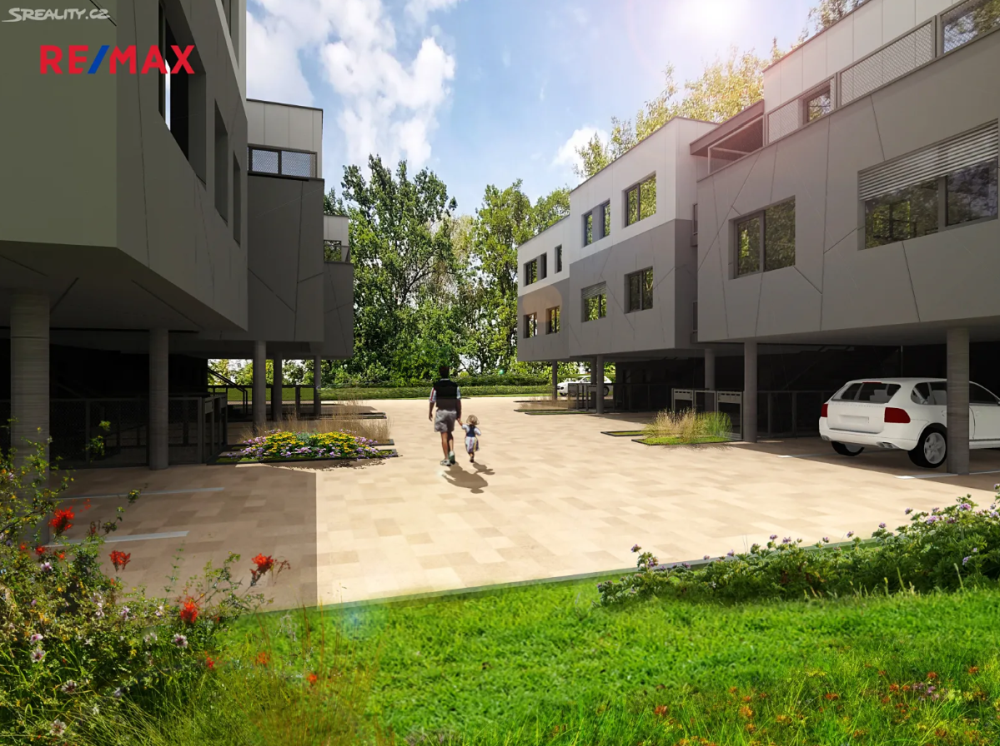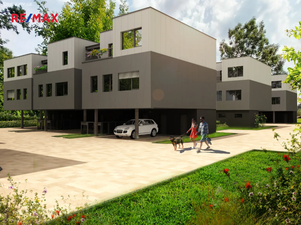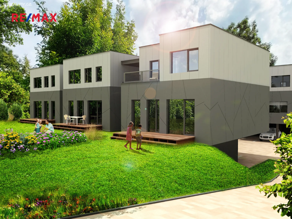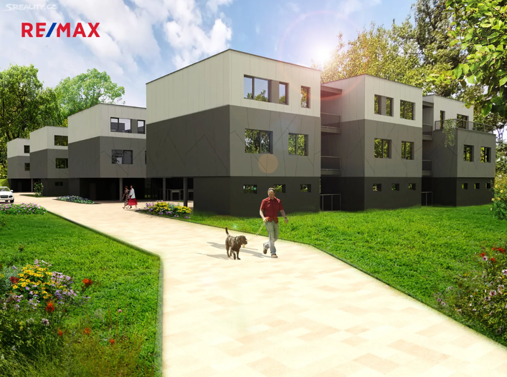 Vizualizace plánovaného záměru Viladomy Jistebník. Celkově mají vzniknout tři bytové domy a tři řadové domy.