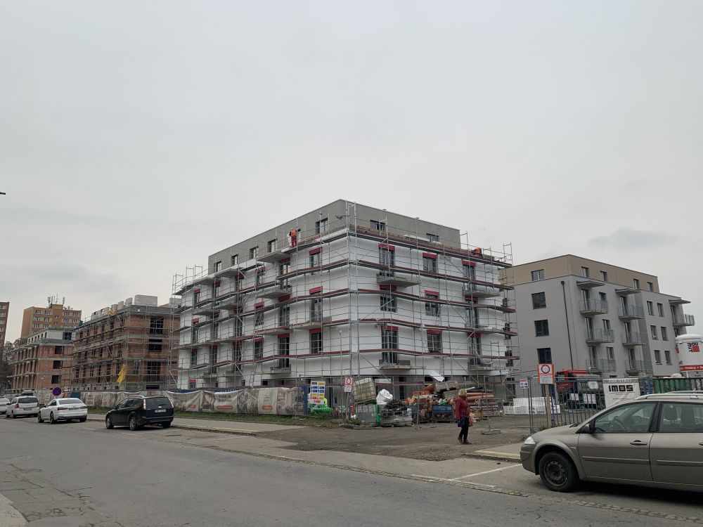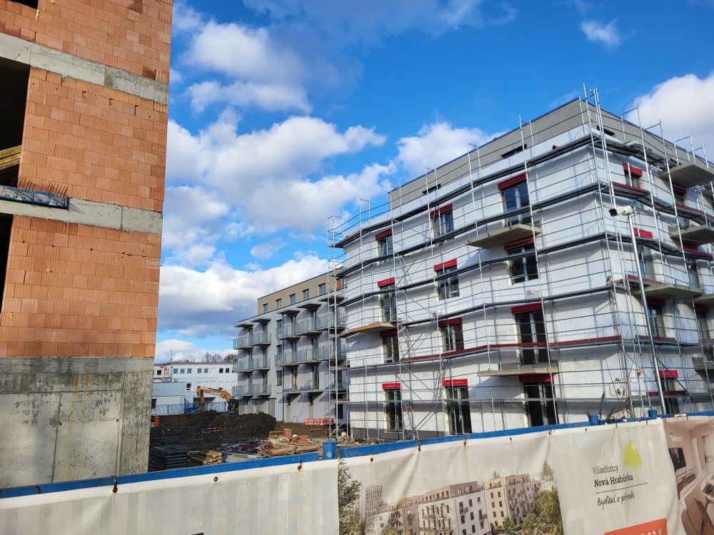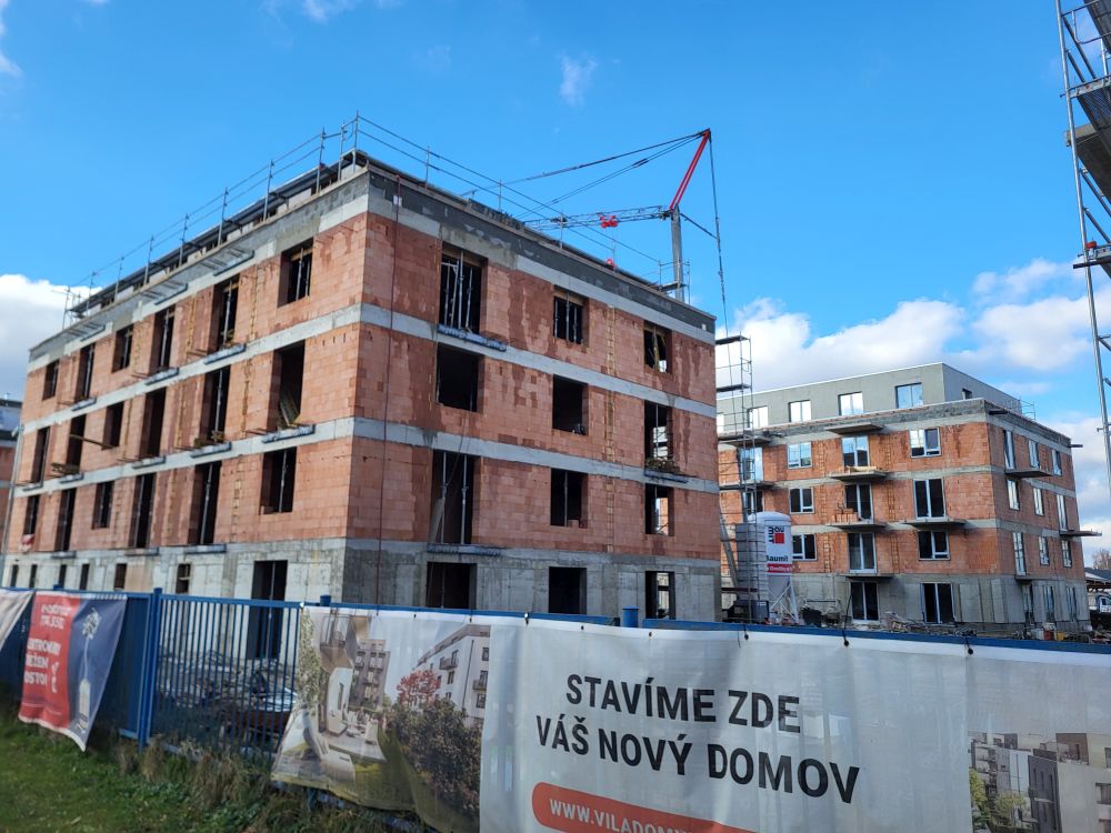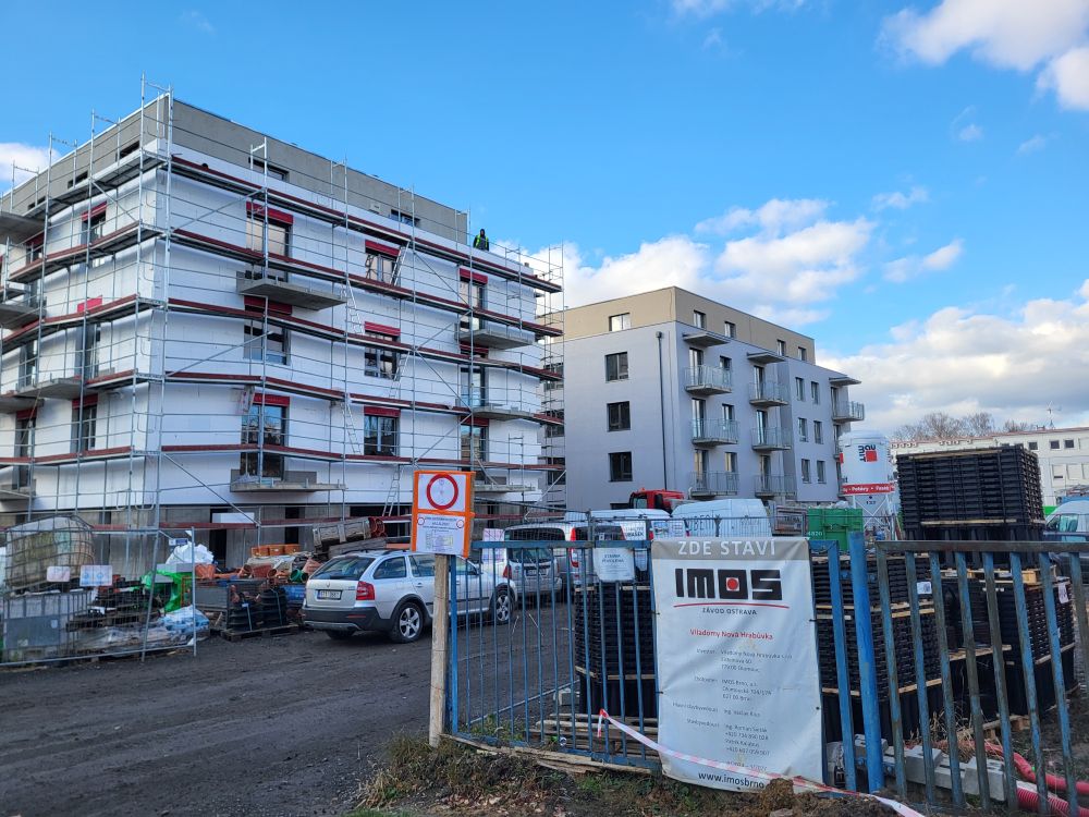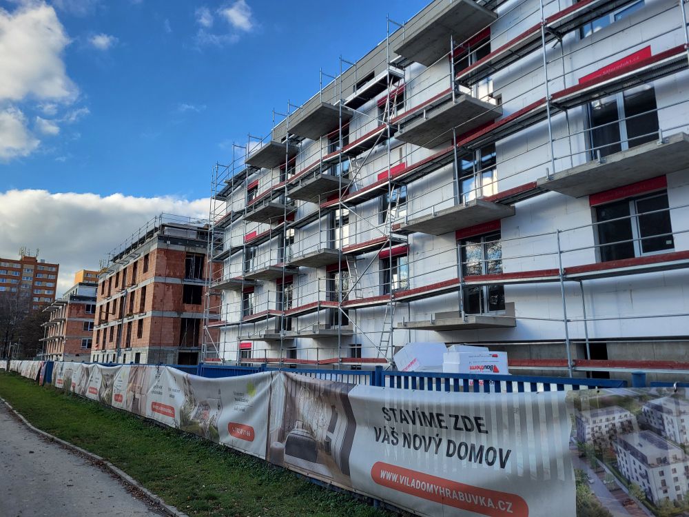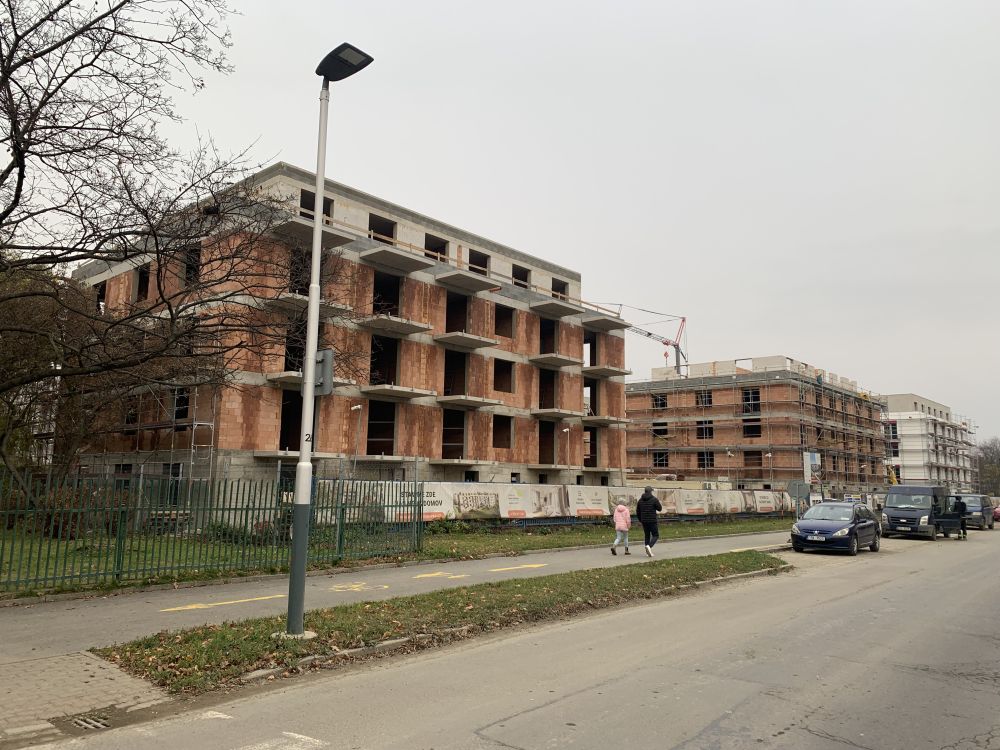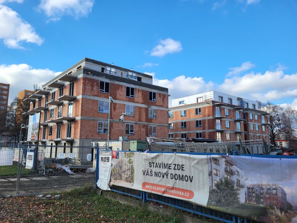 Aktuální fotografie výstavby bytových domů v Ostravě-Hrabůvce.