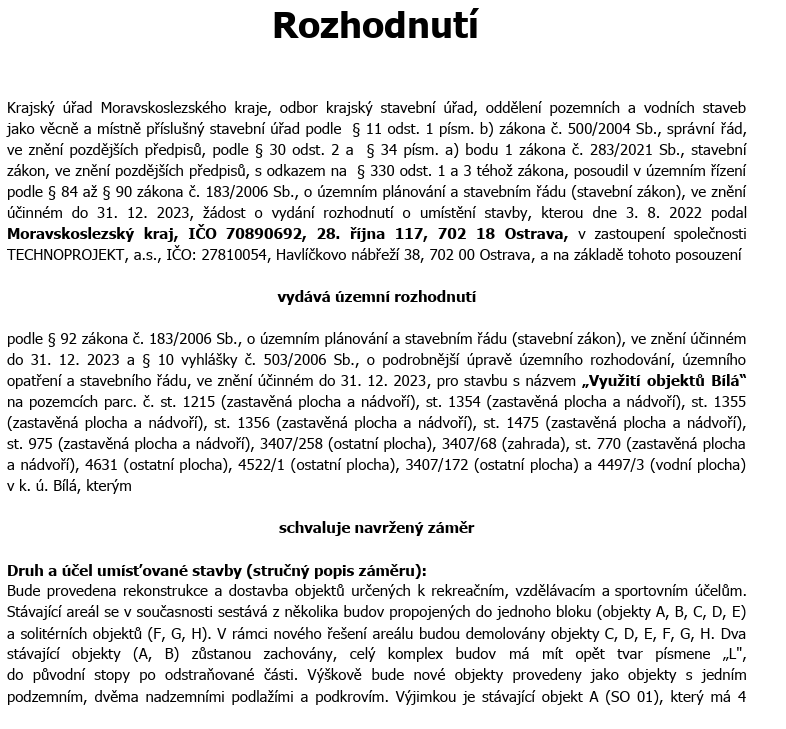 Záměr rekonstrukce a dostavby nevyužitého areálu na Bílé získal územní rozhodnutí.