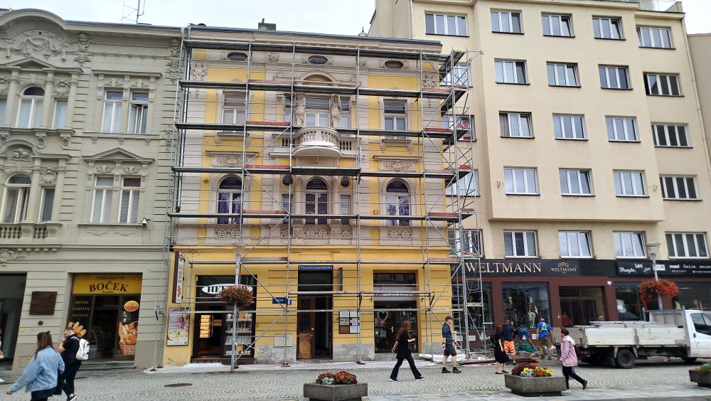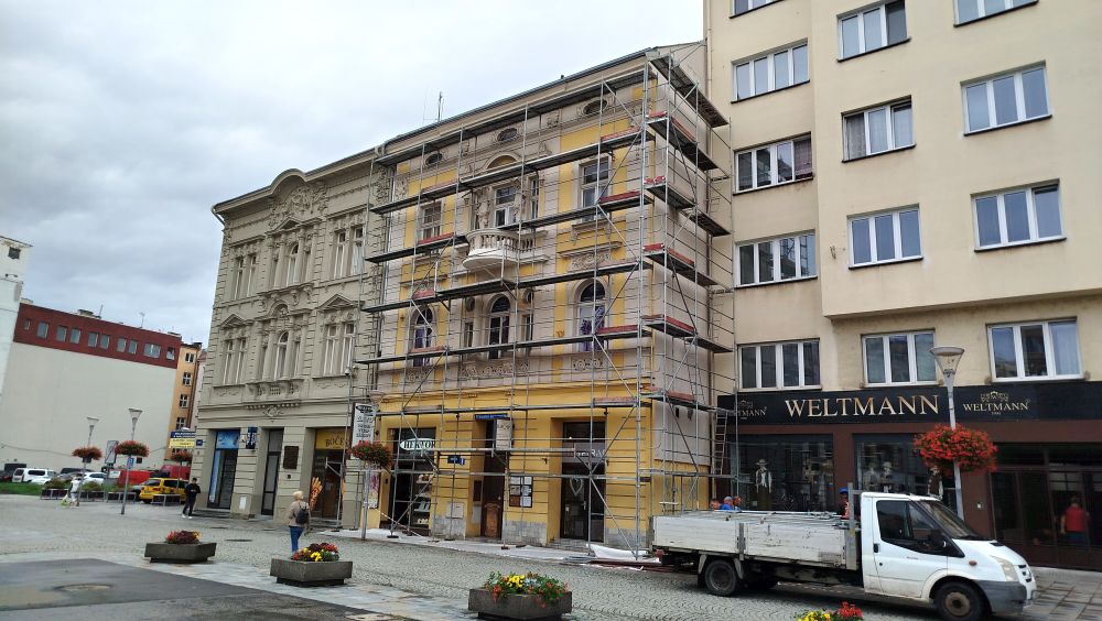 Je to pár týdnů, co bylo sundáno lešení na objektu č.p. 10 na Zámecké ulici v centru Ostravy. Nyní je lešení postavené při sousedním objektu a byly zde rovněž zahájeny stavební práce.